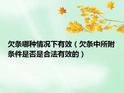 目前大家应该是对欠条中所附条件是否是合法有效的比较感兴趣的,所以今天CC就来为大家整理了一些关于欠条中所附条件是否是合法有效的方面的相关知识来分享给大家,希望大家会喜欢哦。