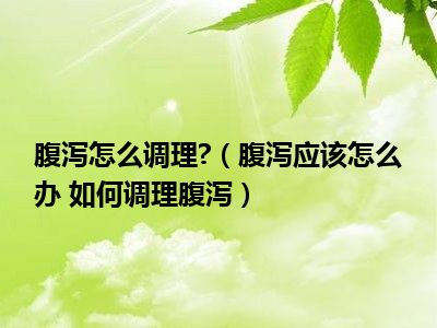 目前大家应该是对腹泻应该怎么办 如何调理腹泻比较感兴趣的,所以今天小编CC就来为大家整理了一些关于腹泻应该怎么办 如何调理腹泻方面的相关知识来分享给大家,希望大家会喜欢哦。