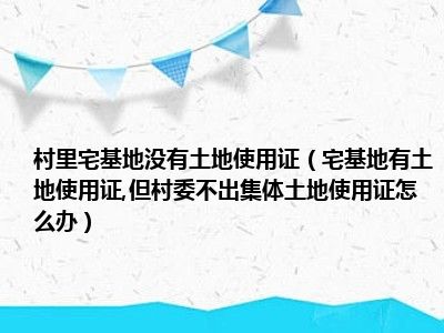 导读 目前大家应该是对宅基地有土地使用证,但村委不出集体土地使用证怎么办比较感兴趣的,所以今天好房网小编CC就来为大家整理了一些关于宅基地