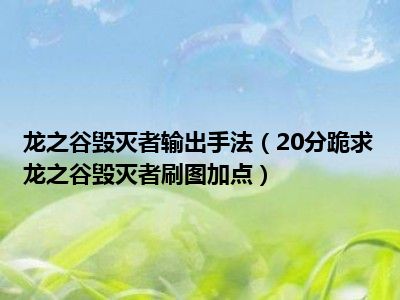相信目前很多小伙伴对于20分跪求龙之谷毁灭者刷图加点都比较感兴趣,那么小编今天在网上也是收集了一些与20分跪求龙之谷毁灭者刷图加点相关的信息来分享给大家,希望能够帮助到大家哦。