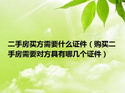 导读 目前大家应该是对购买二手房需要对方具有哪几个证件比较感兴趣的,所以今天好房网小编CC就来为大家整理了一些关于购买二手房需要对方具有哪
