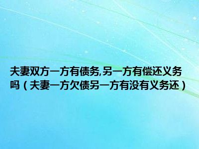 目前大家应该是对夫妻一方欠债另一方有没有义务还比较感兴趣的,所以今天CC就来为大家整理了一些关于夫妻一方欠债另一方有没有义务还方面的相关知识来分享给大家,希望大家会喜欢哦。
