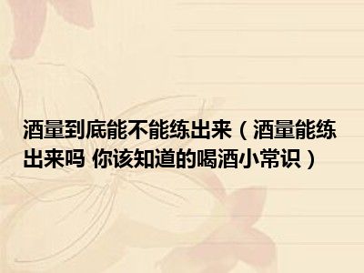 目前大家应该是对酒量能练出来吗 你该知道的喝酒小常识比较感兴趣的,所以今天小编CC就来为大家整理了一些关于酒量能练出来吗 你该知道的喝酒小常识方面的相关知识来分享给大家,希望大家会喜欢哦。