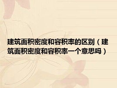 导读 目前大家应该是对建筑面积密度和容积率一个意思吗比较感兴趣的,所以今天好房网小编CC就来为大家整理了一些关于建筑面积密度和容积率一个意