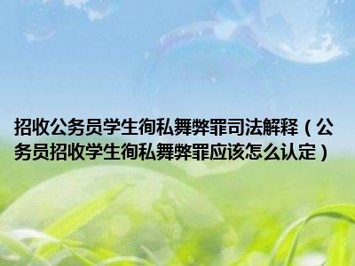 目前大家应该是对公务员招收学生徇私舞弊罪应该怎么认定比较感兴趣的,所以今天CC就来为大家整理了一些关于公务员招收学生徇私舞弊罪应该怎么认定方面的相关知识来分享给大家,希望大家会喜欢哦。