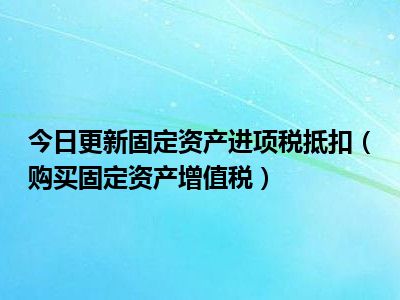 固定资产进项税抵扣(购买固定资产增值税)