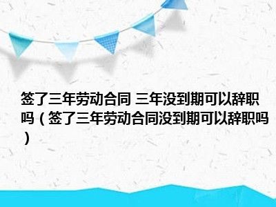 导读目前大家应该是对签了三年劳动合同没到期可以辞职吗比较感兴趣的,所以今天CC就来为大家整理了一些关于签了三年劳动合同没到期可以辞职吗方...