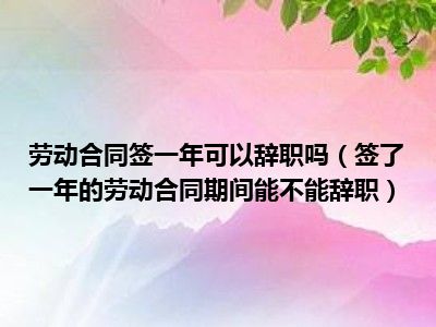 目前大家应该是对签了一年的劳动合同期间能不能辞职比较感兴趣的,所以今天CC就来为大家整理了一些关于签了一年的劳动合同期间能不能辞职方面的相关知识来分享给大家,希望大家会喜欢哦。