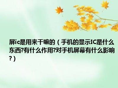 2、像在手机屏幕后面的IC就是传递,处理显示图像信息等,要是出了问题屏幕会花屏。