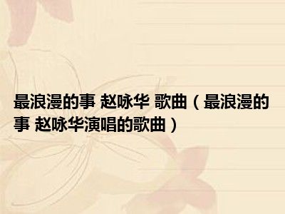 导读 目前是有很多朋友们对于最浪漫的事 赵咏华演唱的歌曲这个信息比较感兴趣,那么小编也是收集了一些最浪漫的事 赵咏华演唱的歌曲相关的信息