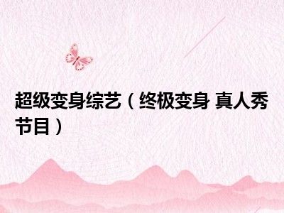 导读 目前是有很多朋友们对于终极变身 真人秀节目这个信息比较感兴趣,那么小编也是收集了一些终极变身 真人秀节目相关的信息来分享给大家,希...
