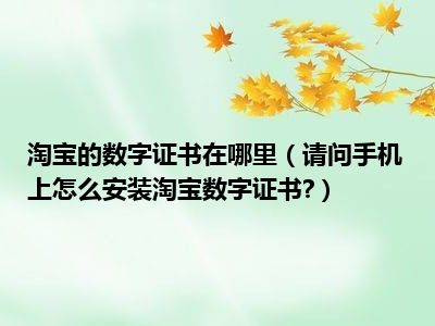 相信目前很多小伙伴对于请问手机上怎么安装淘宝数字证书?都比较感兴趣,那么小编今天在网上也是收集了一些与请问手机上怎么安装淘宝数字证