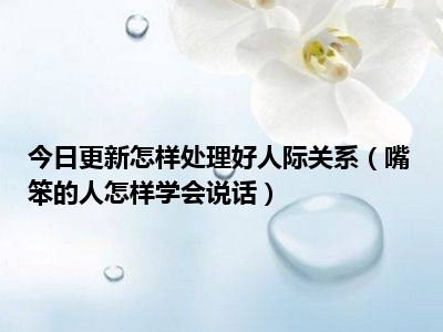 目前上述的内容应该能够为大家解答出大家对于怎样处理好人际关系(嘴笨的人怎样学会说话)的疑惑了,所以如果大家还想要了解更多的知识内容,也可以关注本站其他文章进行了解哦。