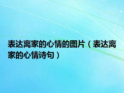 目前应该是有很多小伙伴对于表达离家的心情诗句方面的信息比较感兴趣,现在小编就收集了一些与表达离家的心情诗句相关的信息来分享给大家,感兴趣的小伙伴可以接着往下看,希望会帮助到你哦。