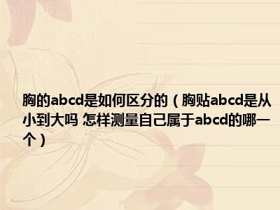 目前大家应该是对胸贴abcd是从小到大吗 怎样测量自己属于abcd的哪一个比较感兴趣的,所以今天小编CC就来为大家整理了一些关于胸贴abcd是从小到大吗 怎样测量自己属于abcd的哪一个方面的相关知识来分享给大家,希望大家会喜欢哦。