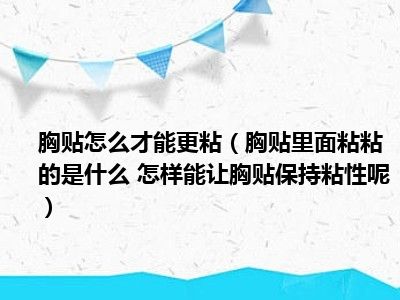 目前大家应该是对胸贴里面粘粘的是什么 怎样能让胸贴保持粘性呢比较感兴趣的,所以今天小编CC就来为大家整理了一些关于胸贴里面粘粘的是什么 怎样能让胸贴保持粘性呢方面的相关知识来分享给大家,希望大家会喜欢哦。