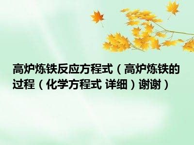 目前应该是有很多小伙伴对于高炉炼铁的过程(化学方程式 详细)谢谢方面的信息比较感兴趣,现在小编就收集了一些与高炉炼铁的过程(化学方程式 详细)谢谢相关的信息来分享给大家,感兴趣的小伙伴可以接着往下看,希望会帮助到你哦。