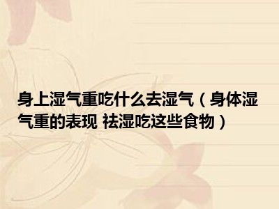 目前大家应该是对身体湿气重的表现 祛湿吃这些食物比较感兴趣的,所以今天小编CC就来为大家整理了一些关于身体湿气重的表现 祛湿吃这些食物方面的相关知识来分享给大家,希望大家会喜欢哦。
