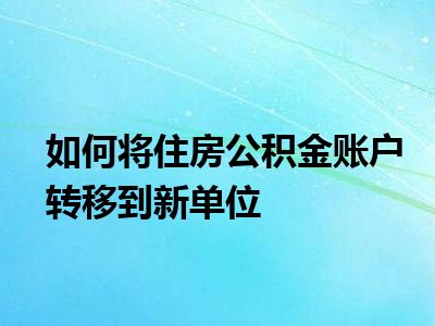 导读 目前大家应该是对如何将住房公积金账户转移到新单位比较感兴趣的,所以今天好房网小编CC就来为大家整理了一些关于如何将住房公积金