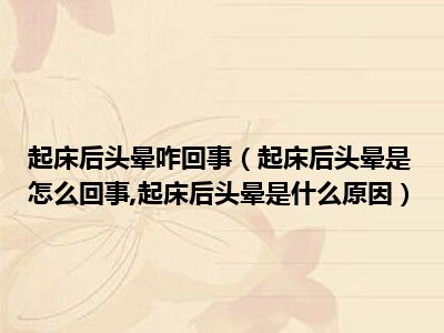 目前大家应该是对起床后头晕是怎么回事,起床后头晕是什么原因比较感兴趣的,所以今天小编CC就来为大家整理了一些关于起床后头晕是怎么回事,起床后头晕是什么原因方面的相关知识来分享给大家,希望大家会喜欢哦。