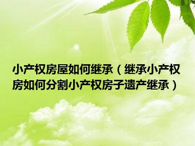 导读 目前大家应该是对继承小产权房如何分割小产权房子遗产继承比较感兴趣的,所以今天好房网小编CC就来为大家整理了一些关于继承小产权房如何分