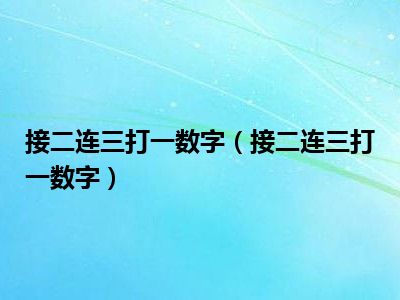 目前应该是有很多小伙伴对于接二连三打一数字方面的信息比较感兴趣,现在小编就收集了一些与接二连三打一数字相关的信息来分享给大家,感兴趣的小伙伴可以接着往下看,希望会帮助到你哦。