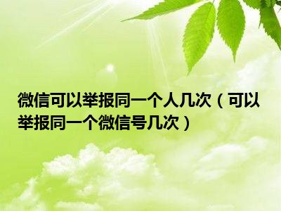 导读 1、可以举报同一个微信号几次2、同一个微信号可以举报的次数没有限制,但是不要短时间内重复举报,因为系统可能会认为是恶意的。所以看情况
