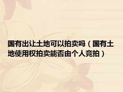 国有土地使用权拍卖能由个人竞拍。中华人民共和国境内外的公司、企业、其他组织和个人都是可以参与国有土地使用权竞拍的。