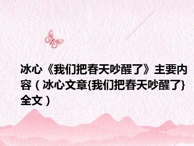目前应该是有很多小伙伴对于冰心文章{我们把春天吵醒了}全文方面的信息比较感兴趣,现在小编就收集了一些与冰心文章{我们把春天吵醒了}全文相关的信息来分享给大家,感兴趣的小伙伴可以接着往下看,希望会帮助到你哦。