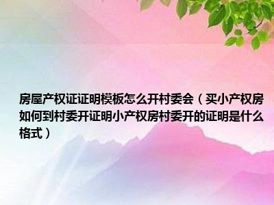 导读 目前大家应该是对买小产权房如何到村委开证明小产权房村委开的证明是什么格式比较感兴趣的,所以今天好房网小编CC就来为大家整理了一些关于