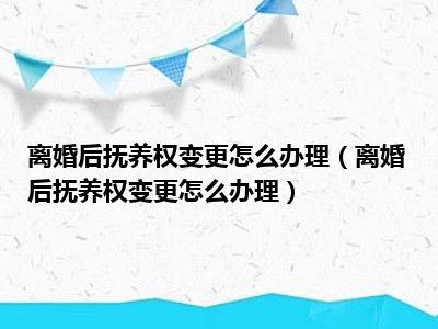 目前大家应该是对离婚后抚养权变更怎么办理比较感兴趣的,所以今天CC就来为大家整理了一些关于离婚后抚养权变更怎么办理方面的相关知识来分享给大家,希望大家会喜欢哦。