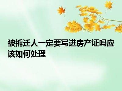 导读 目前大家应该是对被拆迁人一定要写进房产证吗应该怎么办理呢比较感兴趣的,所以今天好房网小编CC就来为大家整理了一些关于被拆迁人