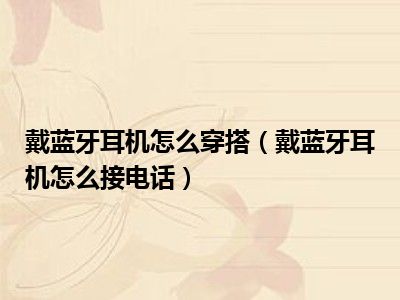 导读 1、戴蓝牙耳机怎么接电话2、每个蓝牙耳机上都有一个接听按钮。当它与手机成功配对后,手机可以通过蓝牙耳机直接接听电话。每个蓝牙耳机的接