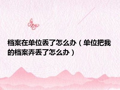 目前大家应该是对单位把我的档案弄丢了怎么办比较感兴趣的,所以今天CC就来为大家整理了一些关于单位把我的档案弄丢了怎么办方面的相关知识来分享给大家,希望大家会喜欢哦。