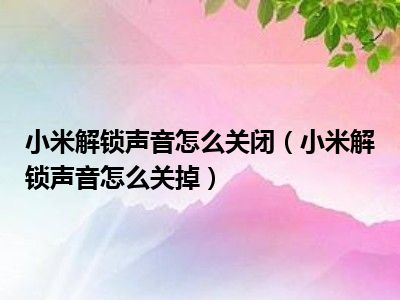 1、 小米解锁声音怎么关掉?