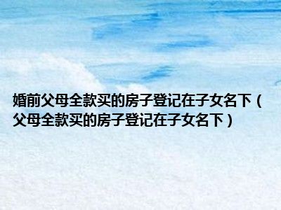 目前大家应该是对父母全款买的房子登记在子女名下比较感兴趣的,所以今天CC就来为大家整理了一些关于父母全款买的房子登记在子女名下方面的相关知识来分享给大家,希望大家会喜欢哦。