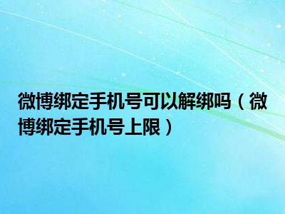 导读 1、微博绑定手机号上限2、一部手机只能绑定一个微博账号,不能同时绑定多个账号。微博是微博客的简称,是博客的一种。3、微博是通过关注机