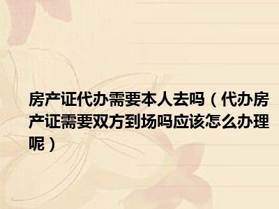 导读 目前大家应该是对代办房产证需要双方到场吗应该怎么办理呢比较感兴趣的,所以今天好房网小编CC就来为大家整理了一些关于代办房产证需要双方