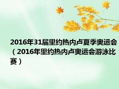 1、2016年里约热内卢奥运会游泳比赛(英文:Swimming at the 2016 Summer Olympics)是2016年里约热内卢奥运会正式比赛项目,于2016年8月7日至14日在奥林匹克水上运动中心进行。