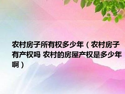 导读 目前大家应该是对农村房子有产权吗 农村的房屋产权是多少年啊比较感兴趣的,所以今天好房网小编CC就来为大家整理了一些关于农村房子有产权