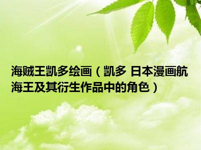 导读 目前是有很多朋友们对于凯多 日本漫画航海王及其衍生作品中的角色这个信息比较感兴趣,那么小编也是收集了一些凯多 日本漫画航海王及其衍...