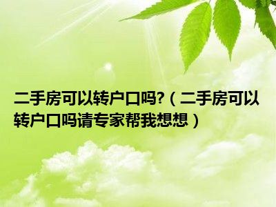 导读 目前大家应该是对二手房可以转户口吗请专家帮我想想比较感兴趣的,所以今天好房网小编CC就来为大家整理了一些关于二手房可以转户口吗请专家