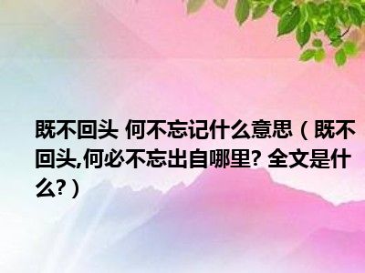 相信目前很多小伙伴对于“既不回头,何必不忘”出自哪里? 全文是什么?都比较感兴趣,那么小编今天在网上也是收集了一些与“既不回头,何必不忘”出自哪里? 全文是什么?相关的信息来分享给大家,希望能够帮助到大家哦。