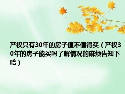 导读 目前大家应该是对产权30年的房子能买吗了解情况的麻烦告知下哈比较感兴趣的,所以今天好房网小编CC就来为大家整理了一些关于产权30年的房子