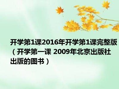 导读 目前是有很多朋友们对于开学第一课 2009年北京出版社出版的图书这个信息比较感兴趣,那么小编也是收集了一些开学第一课 2009年北京出版社...