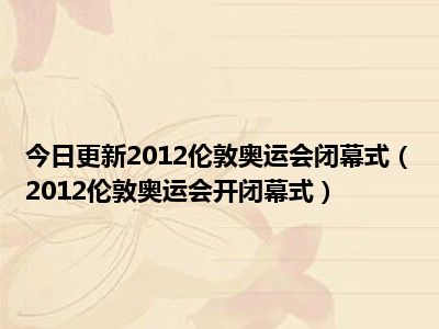 目前上述的内容应该能够为大家解答出大家对于2012伦敦奥运会闭幕式(2012伦敦奥运会开闭幕式)的疑惑了,所以如果大家还想要了解更多的知识内容,也可以关注本站其他文章进行了解哦。