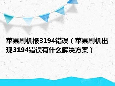 相信目前很多小伙伴对于苹果刷机出现3194错误有什么解决方案都比较感兴趣,那么小编今天在网上也是收集了一些与苹果刷机出现3194错误有什么解决方案相关的信息来分享给大家,希望能够帮助到大家哦。