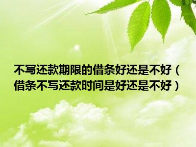 目前大家应该是对借条不写还款时间是好还是不好比较感兴趣的,所以今天CC就来为大家整理了一些关于借条不写还款时间是好还是不好方面的相关知识来分享给大家,希望大家会喜欢哦。