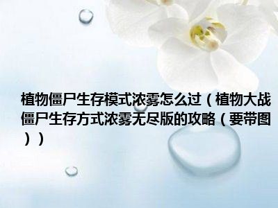 相信目前很多小伙伴对于植物大战僵尸生存方式浓雾无尽版的攻略(要带图)都比较感兴趣,那么小编今天在网上也是收集了一些与植物大战僵尸生存方式浓雾无尽版的攻略(要带图)相关的信息来分享给大家,希望能够帮助到大家哦。
