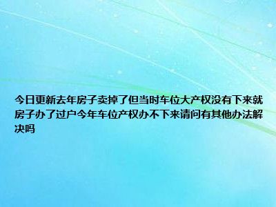 导读 目前大家应该是对去年房子卖掉了,但当时车位大产权没有下来,就房子办了过户,今年车位产权办不下来,请问有其他办法解决吗比较感兴趣的,